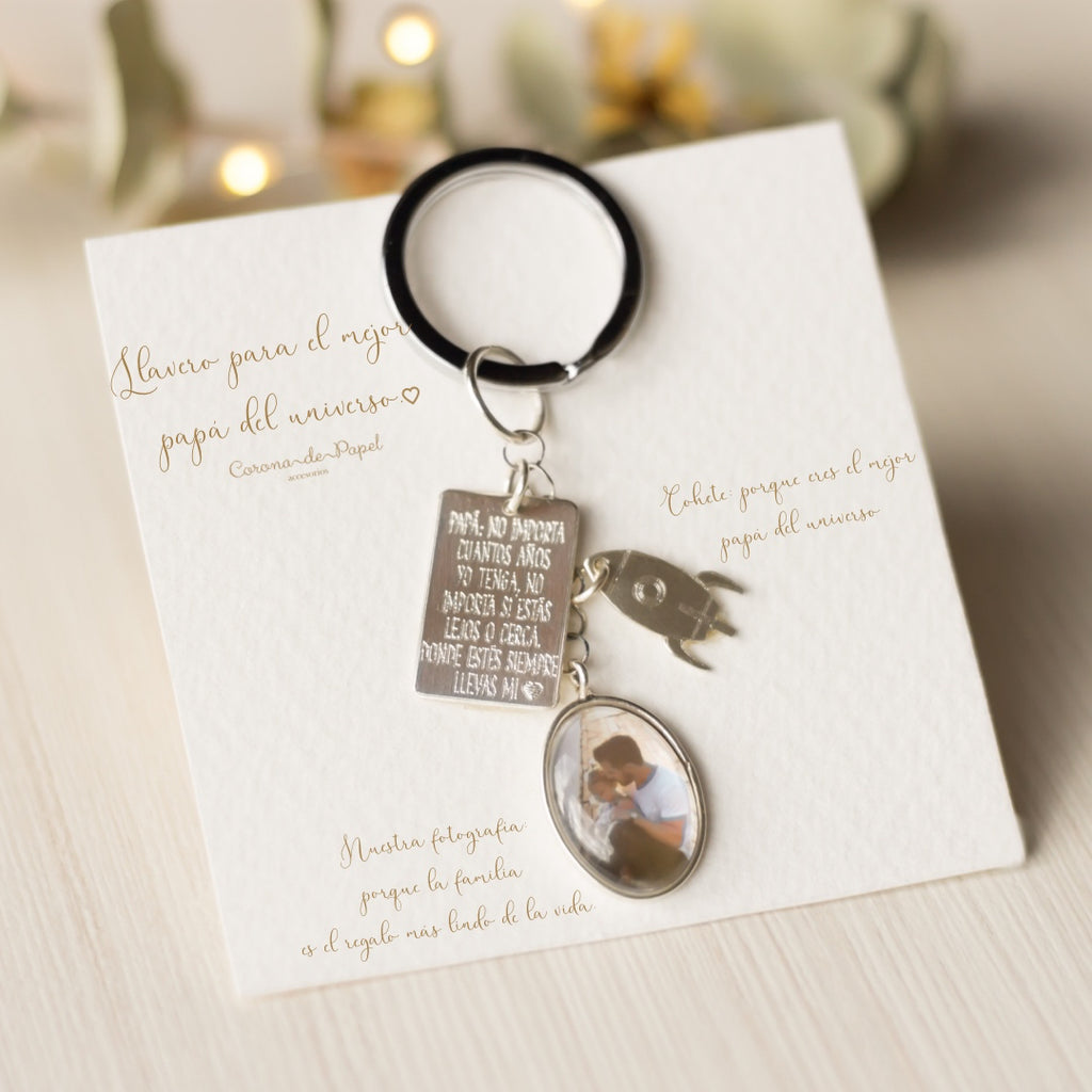 Llavero con cadena y dijes de plata 925, lo hacemos en nuestro taller con tu fotografía personalizada. Cada dije tiene un significado. El material es plata maciza, un muy buen material que perdura por años.