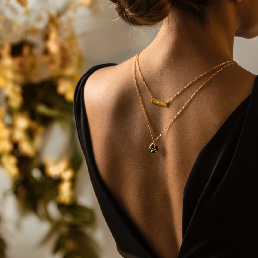Un collar lleva tu constelación zodiacal y el otro lleva tu nombre grabado.